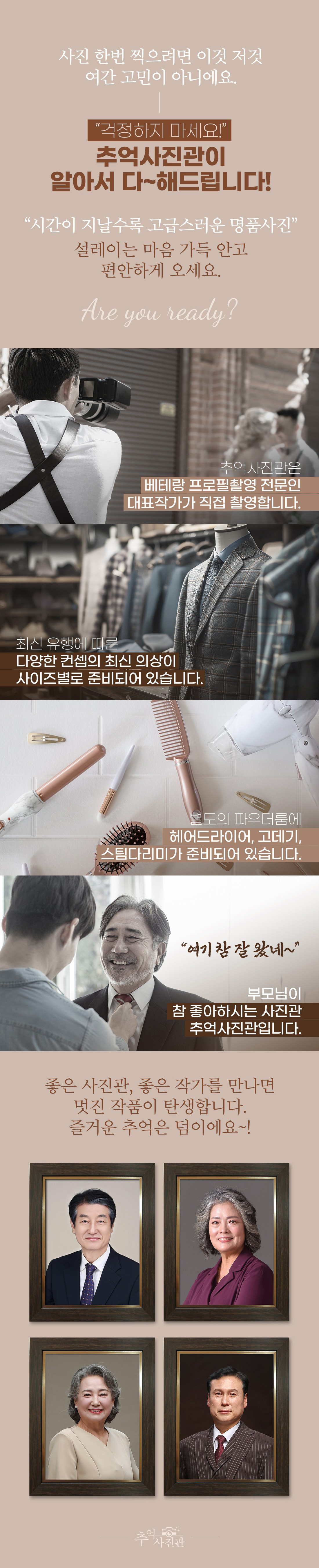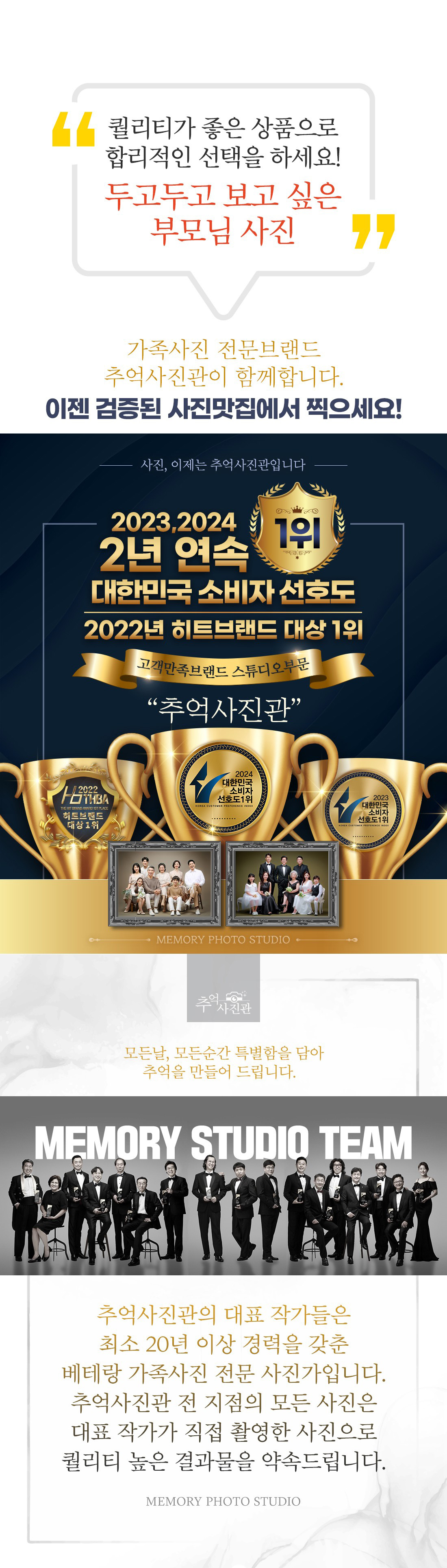 주소 : 수원시 팔달구 매산로 81 해성빌딩 3층 | 사업자등록번호 : 135-15-84391 이용시간 : 매일 10:00 ~ 19:00 (매주 화요일 정기휴무) | 개인정보처리방침 Copyright(c) Memory Studio. All rights reserved. ADMIN